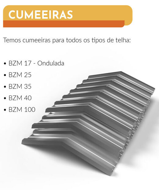 A Biazam oferece cumeeiras metálicas fabricadas em aço Galvalume, Pré-Pintado ou Pós-Pintado, com opções padrão e sob medida, adaptáveis a diferentes modelos de telhas e tipos de cobertura — sejam residenciais, comerciais ou industriais.