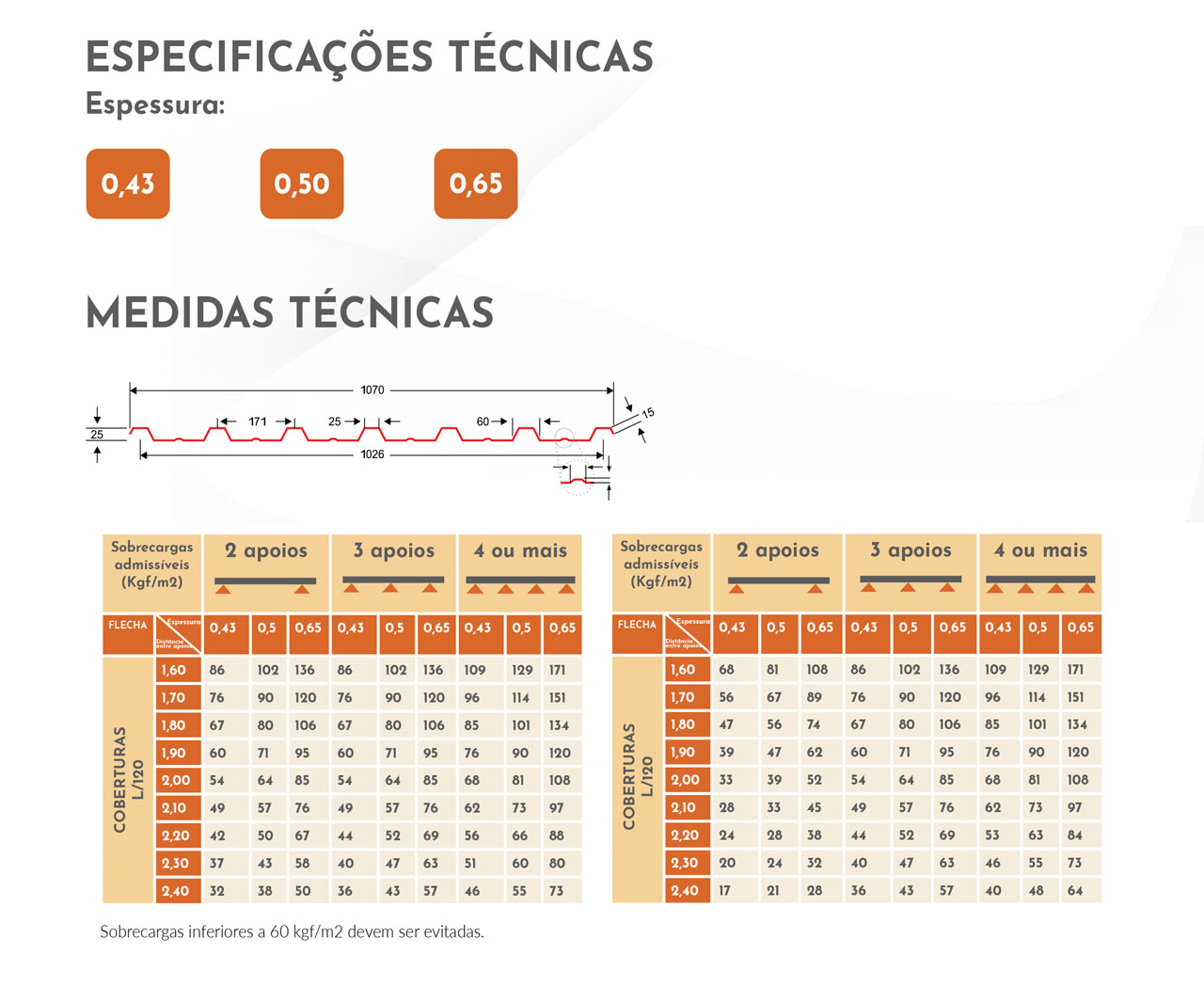 O comprimento das telhas metálicas Biazam é personalizável, adaptando-se ao projeto específico de cada cliente. Já as larguras estão disponíveis em diferentes tamanhos: 1 metro para os modelos Trapézio 25 e Ondulada e 98 cm para o modelo Trapézio 40.